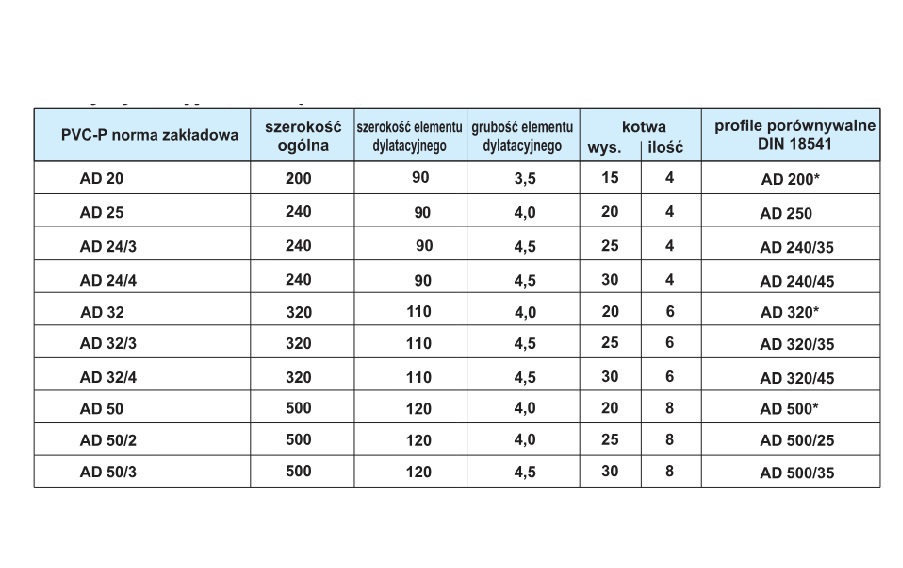Rodzaj: taśma dylatacyjna zewnętrzna do przerw kompensacyjnych